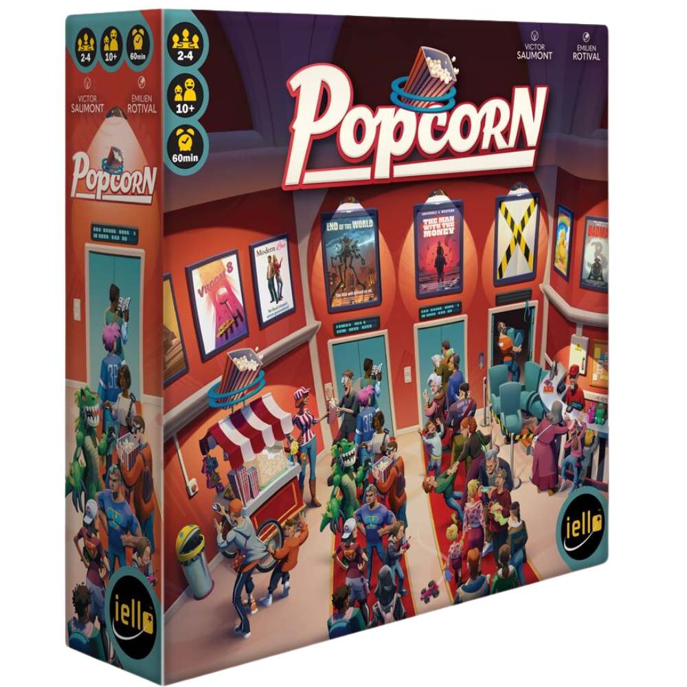 In Popcorn, each player manages their own movie theatre and tries to show the best combination of movies in order to attract guests to their seats.