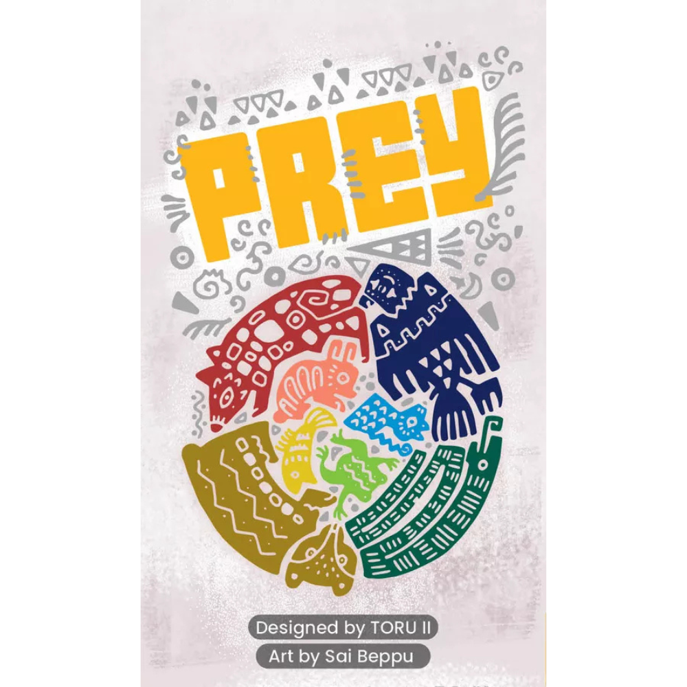 Prey is a 12-trick trick-taking game where 3-4 players play the first six tricks with one side of numbers (predators), then FLIP their cards over to play the final six (prey). You must follow suit if you can.