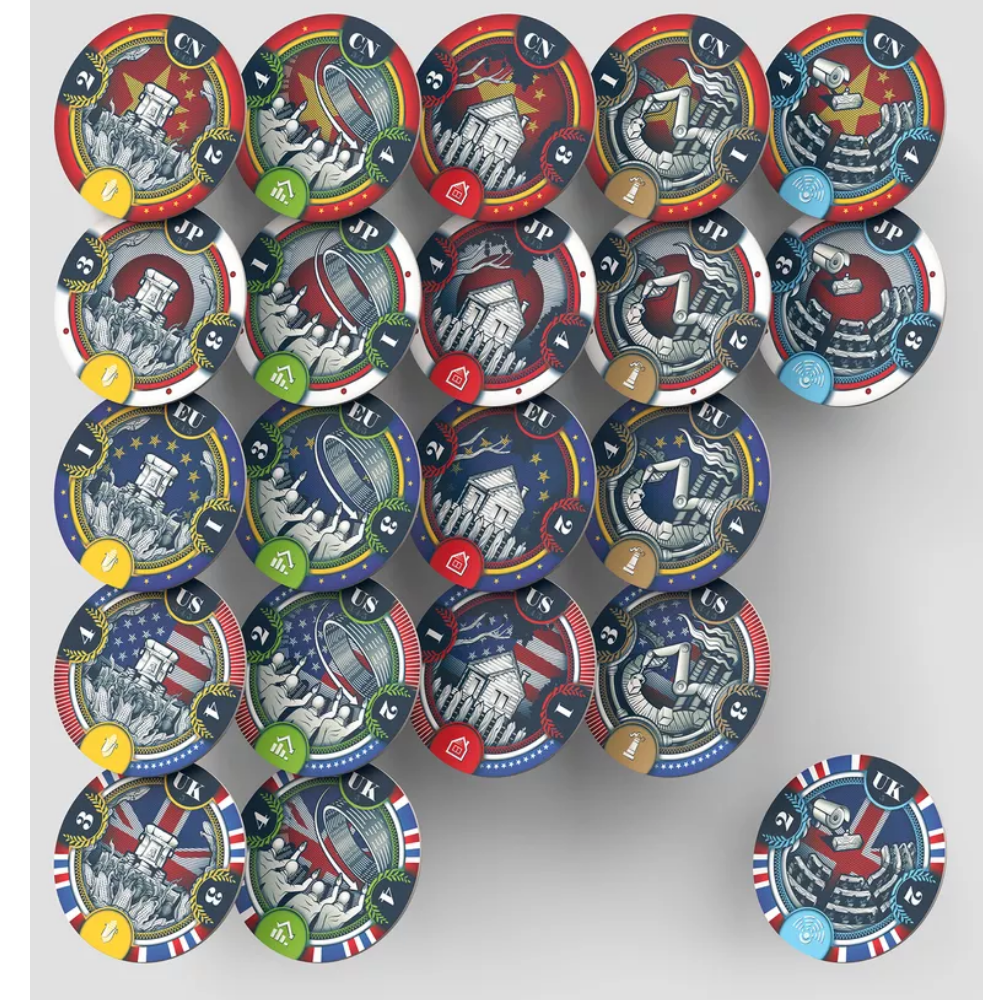 Player markers on the scoring track now reveal which player has the most victory points, but this is not the end. Players must now add up the amount of money they printed and the player who printed the most money loses all their victory points!