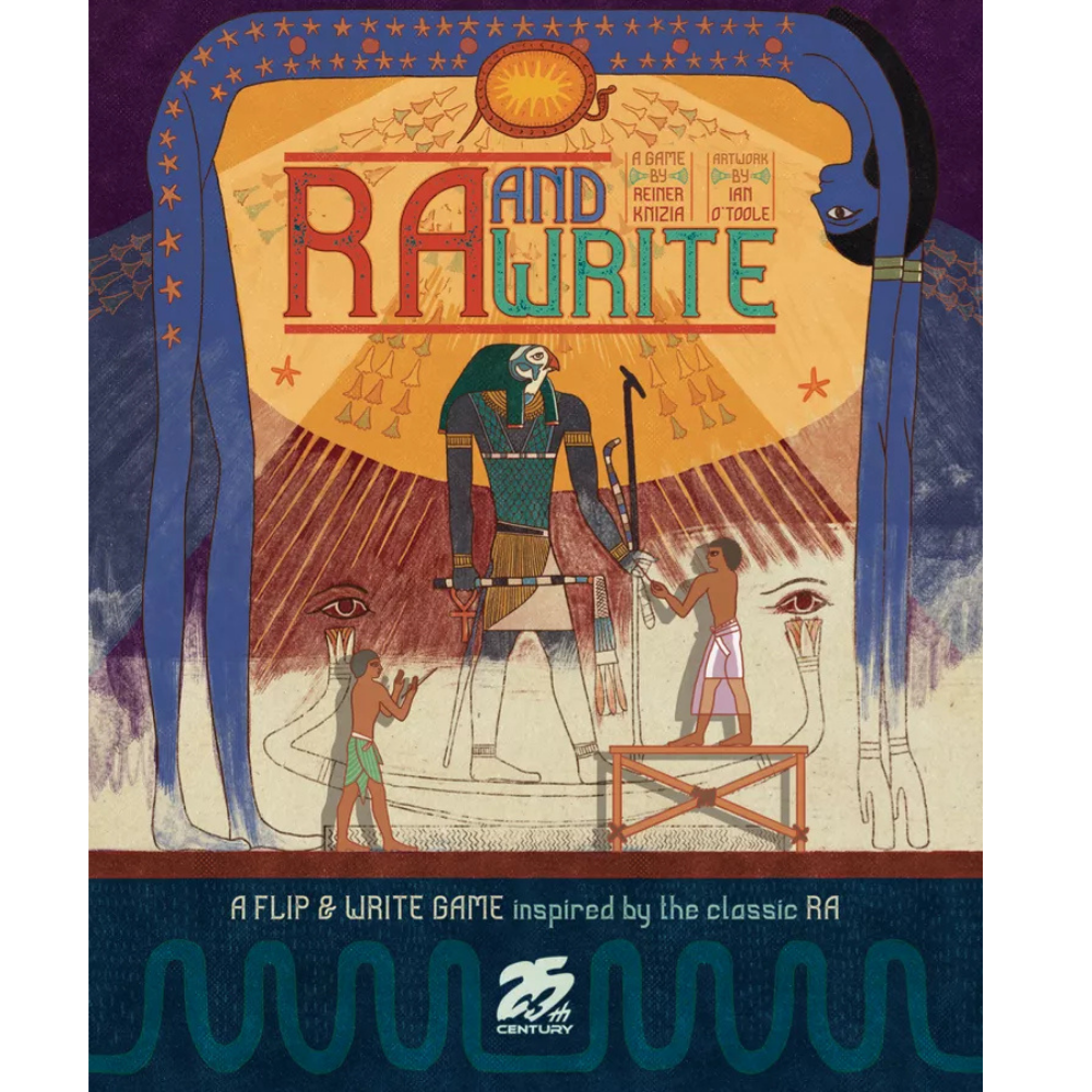 RA and Write is a flip-and-write game built upon the foundation of the classic RA from acclaimed designer Reiner Knizia. It features the same art and thematic style as the 25th Century Games new edition of the board game.