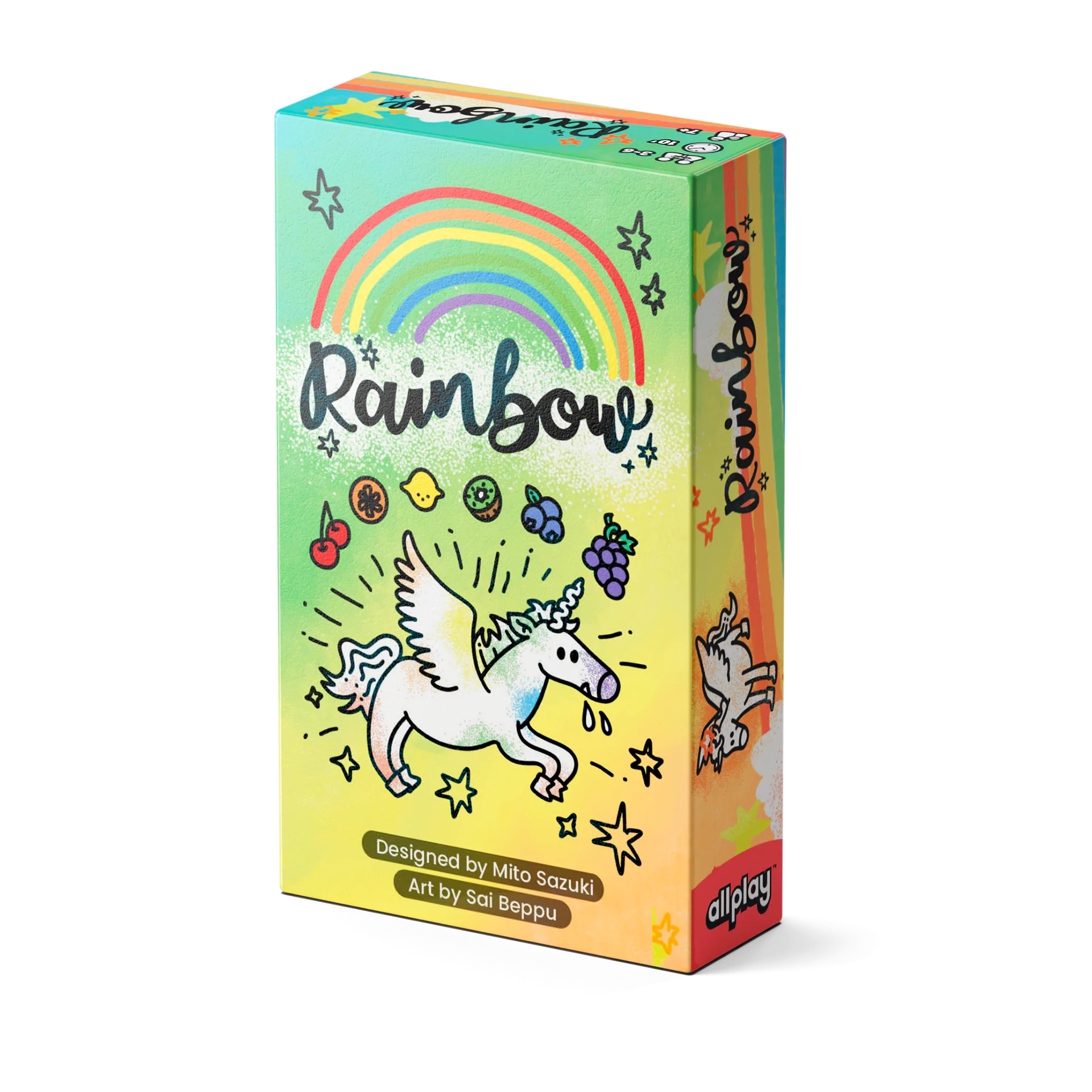 Rainbow is a quick-playing hand management game where players play solo cards, sets, or runs to win points on cards in the center of the table.