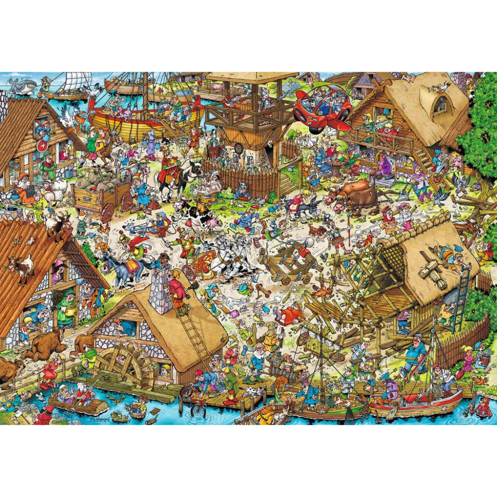 Travel through time as you piece together scenes that span from the classical era to the future! Collect all four puzzles in the series and place them side by side (left to right) to reveal one continuous, hilarious story. What is that horse up to? And where exactly are those tyres going? Piece it together and enjoy hours of puzzling fun!