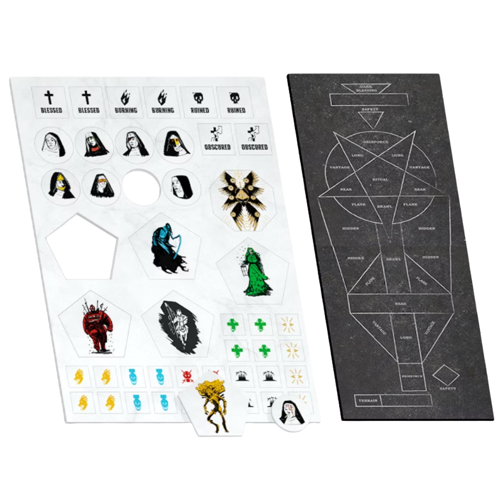 This Kit comes with a token sheet filled with representatives of all the enemies of the Sisterhood - from the Horsemen to the rebellious Angels, and all their eager cultists.
