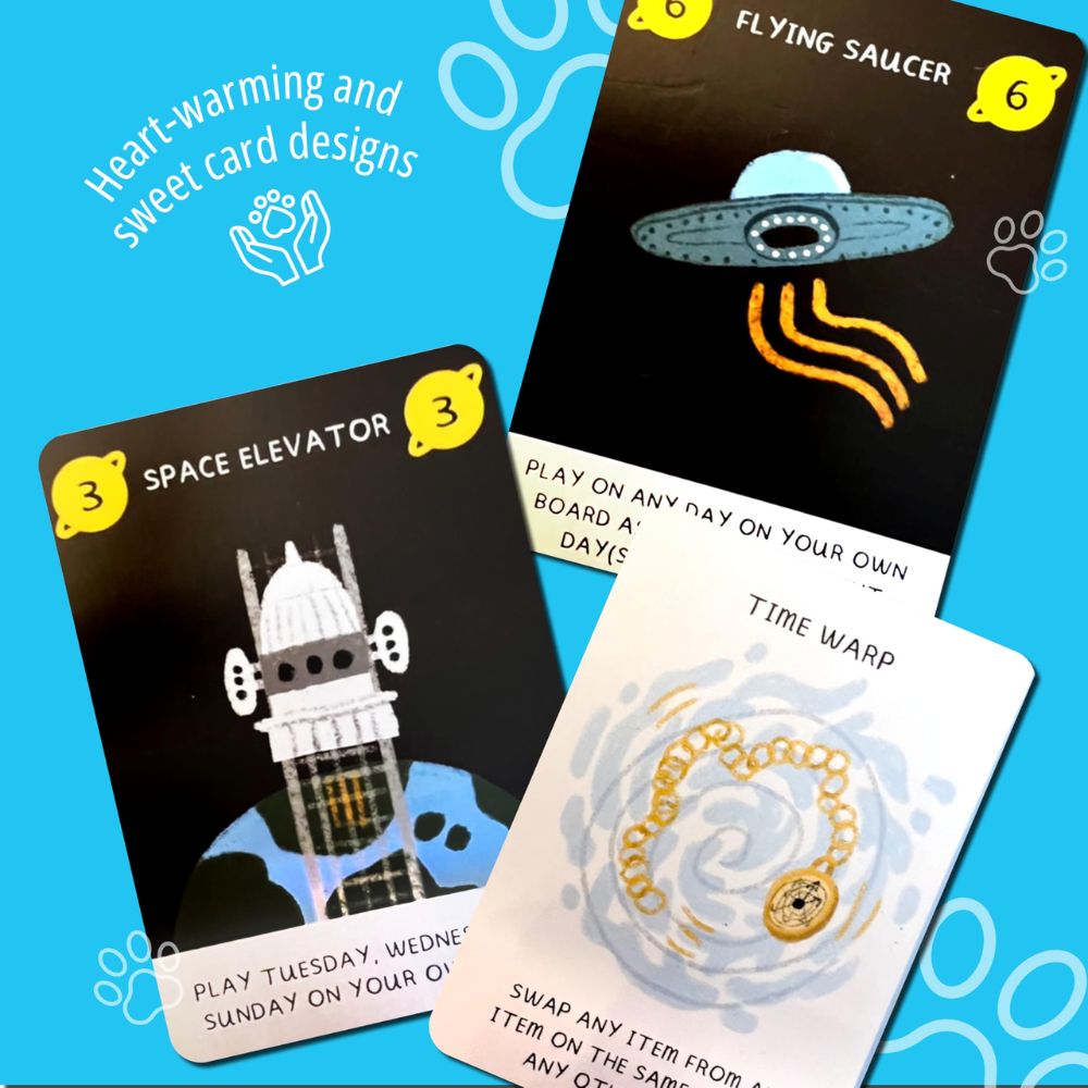Fill your week of spaceships and similar items, scoring the most points in the process. Each card has unique rules of play, with everything from an evil cube to a hyperspace web, as well as lots of interaction between card types. A short take-that strategic game.