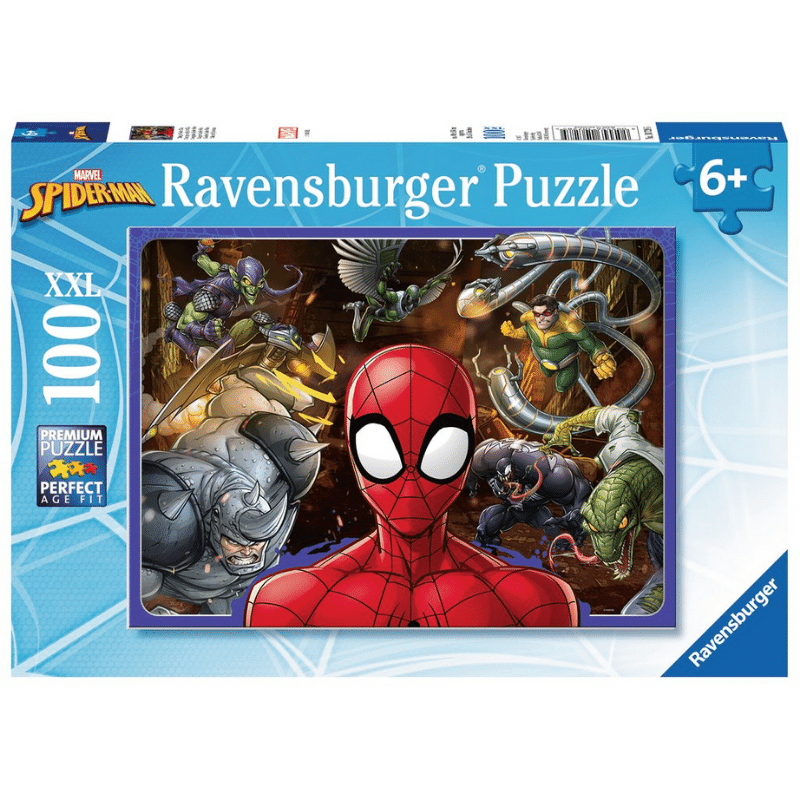 This fun and colourful jigsaw puzzle features Spider-Man in his fancy red suit, and some of the most notorious villains. Features extra large pieces.