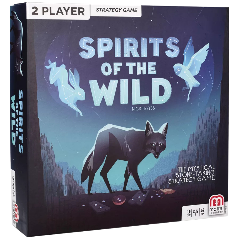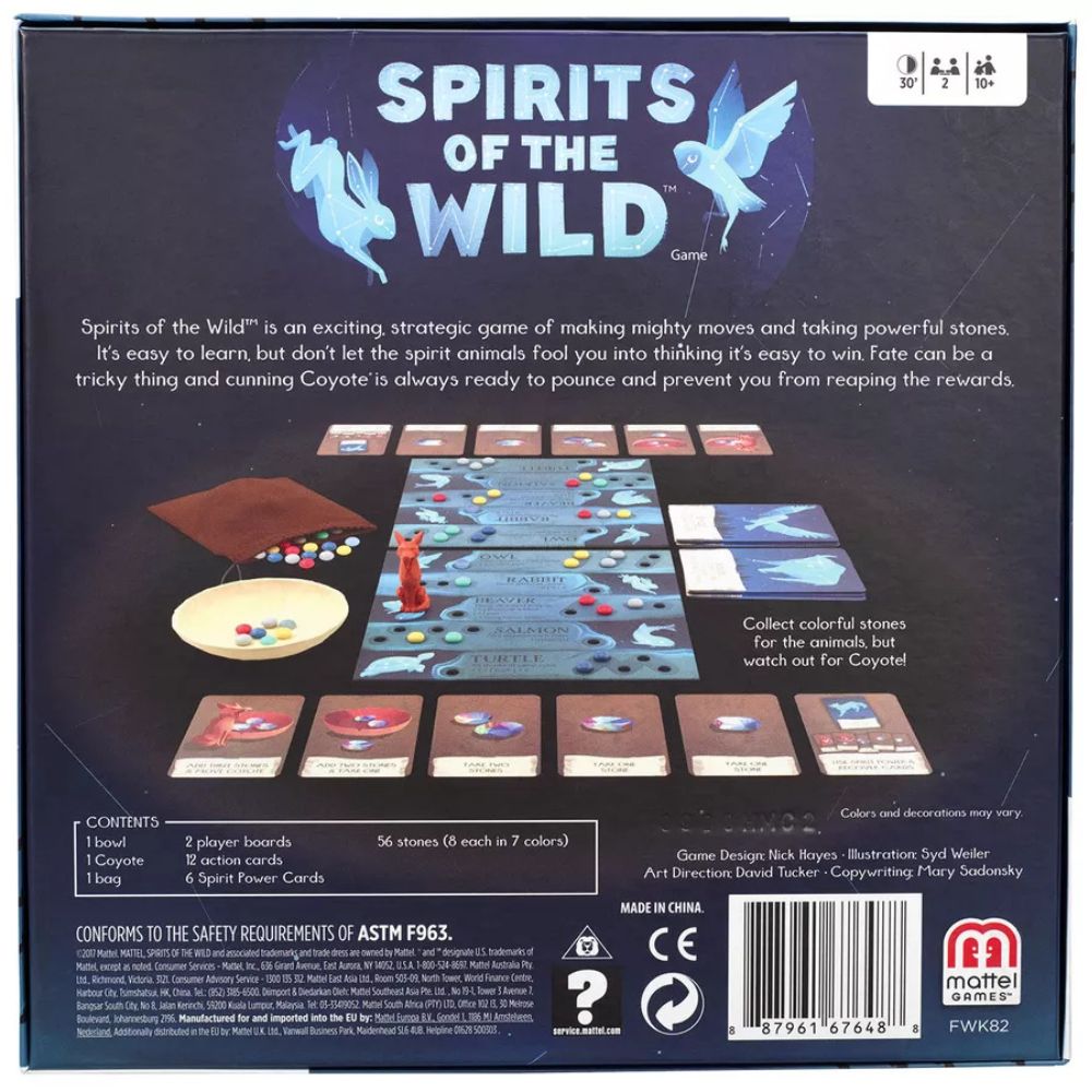 Spirits of the Wild is a stone-taking game for two players. The object of the game is to earn the most points by collecting sets of colourful stones from a central bowl and giving them to the five animals on your score board.
