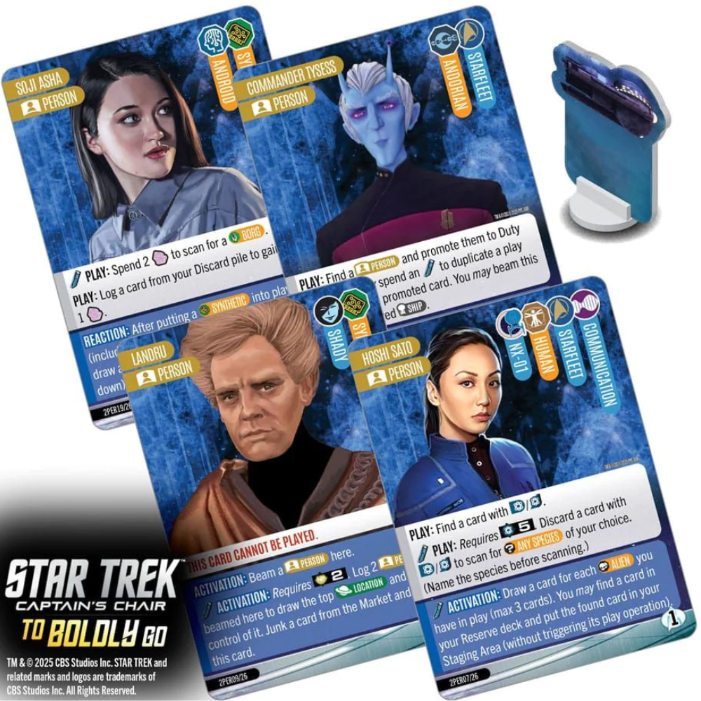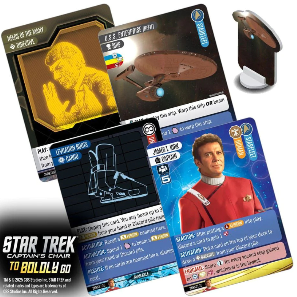 Star Trek: Captain's Chair – To Boldly Go is a new game that can be played on its own or combined with Star Trek: Captain's Chair to create even more captain competitions.