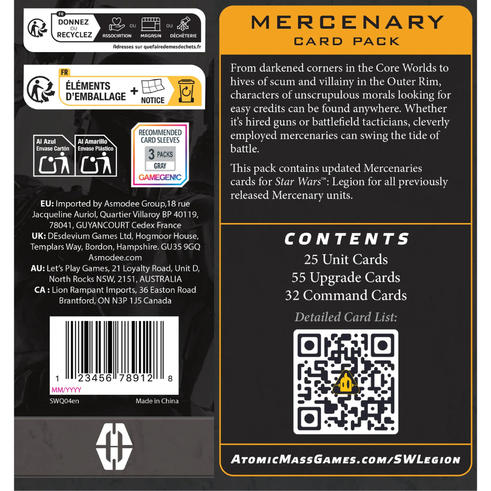 - UNLEASH MERCENARY POWER: The Mercenary Card Pack enhances your Star Wars: Legion game with updated Unit, Command, and Unit-specific Upgrade cards for previously released mercenary units.