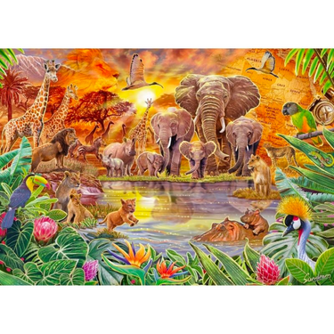 All manner of African animals gather by the watering hole in this wild image from Steve Sundram. From giraffes and elephants to hippos and even baby lions, there is something for every animal lover.