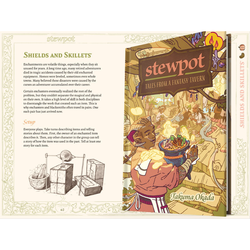 Stewpot: Tales from a Fantasy Tavern by Takuma Okada is a collection of cozy mini-games that tell the story of a tavern run by former adventurers. Gather your dice, pick up a deck of cards, set aside a shiny coin, and get ready for a new set of challenges. Only this time… your adventures start behind the bar.