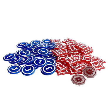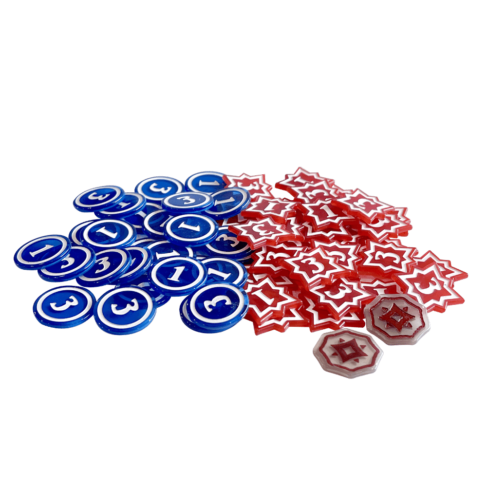 Upgrade your Summoner Wars damage, boost and magic tokens with this new translucent set featuring 62 tokens.