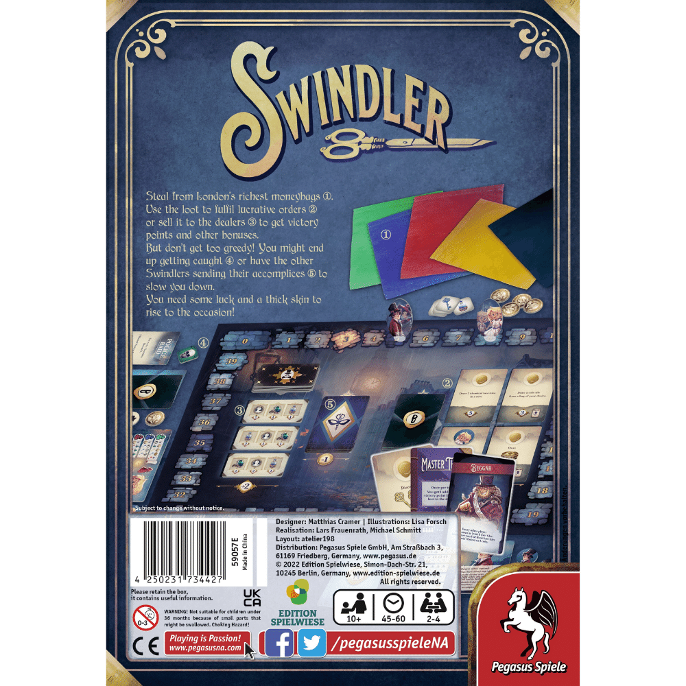 In Swindler, players draw loot tiles from various (money) bags. They either sell the loot directly to dealers or use it to fulfil lucrative orders to become a master thief. But be careful: Some of the finer snobs are more attentive than expected. One wrong move and all the beautiful loot is gone!
