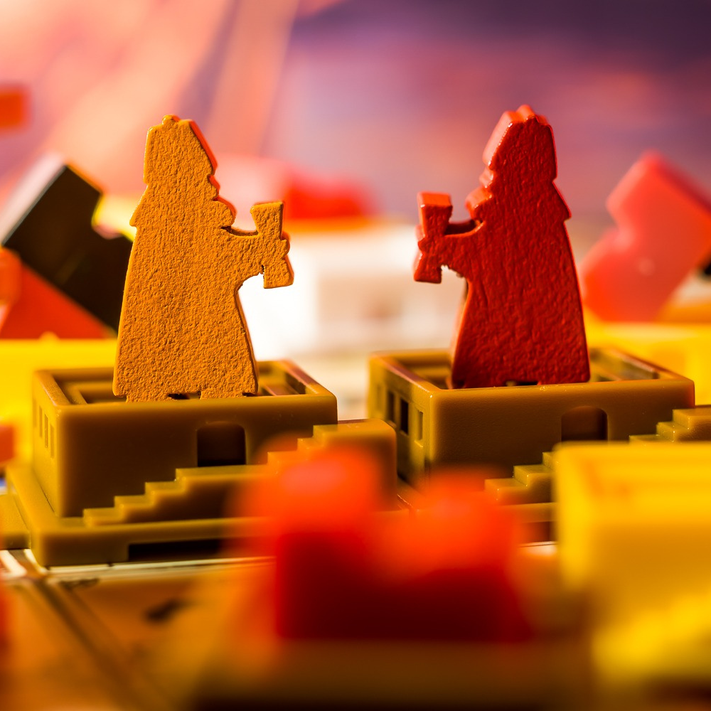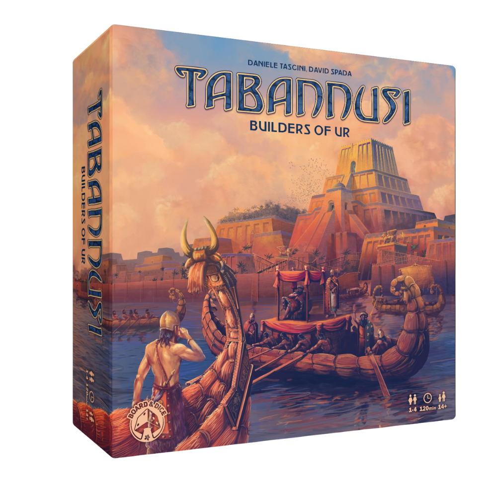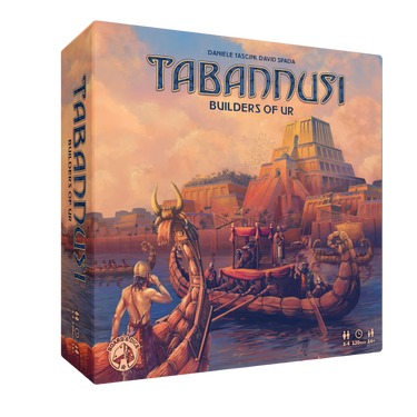 Tabannusi: Builders of Ur features a stunning board showing the city of Ur divided into 5 regions, each tied to a specific color die. Each turn, your worker will activate one of these districts. When activating a district, you must first take a die from the district. Through various actions you will be able to expand your influence in the various districts, expanding construction sites and turning them into buildings to score valuable victory points. But you will also exert your influence in the temple district in order to earn the king’s favour. In the port district you can obtain ships with important abilities and for scoring victory points. You must spend your actions wisely and always make sure that you keep an eye on the general timing of the game. The moment a district is emptied of dice, a scoring will occur.