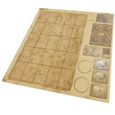 An evocative and useful background for your game. This neoprene playmat includes spaces for your revealed Location cards, and other components. Size: 68cm x 68cm (26,7 x 26,7 inch) .