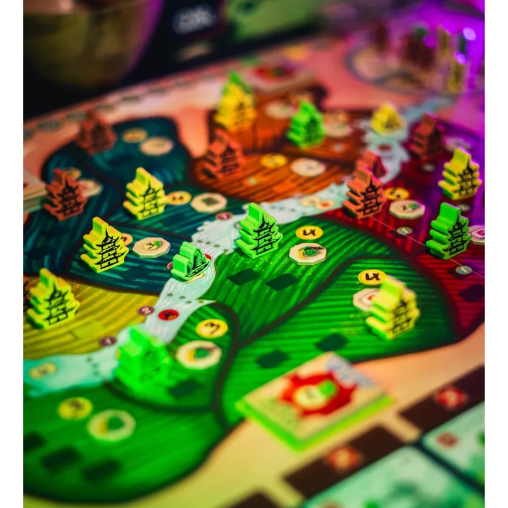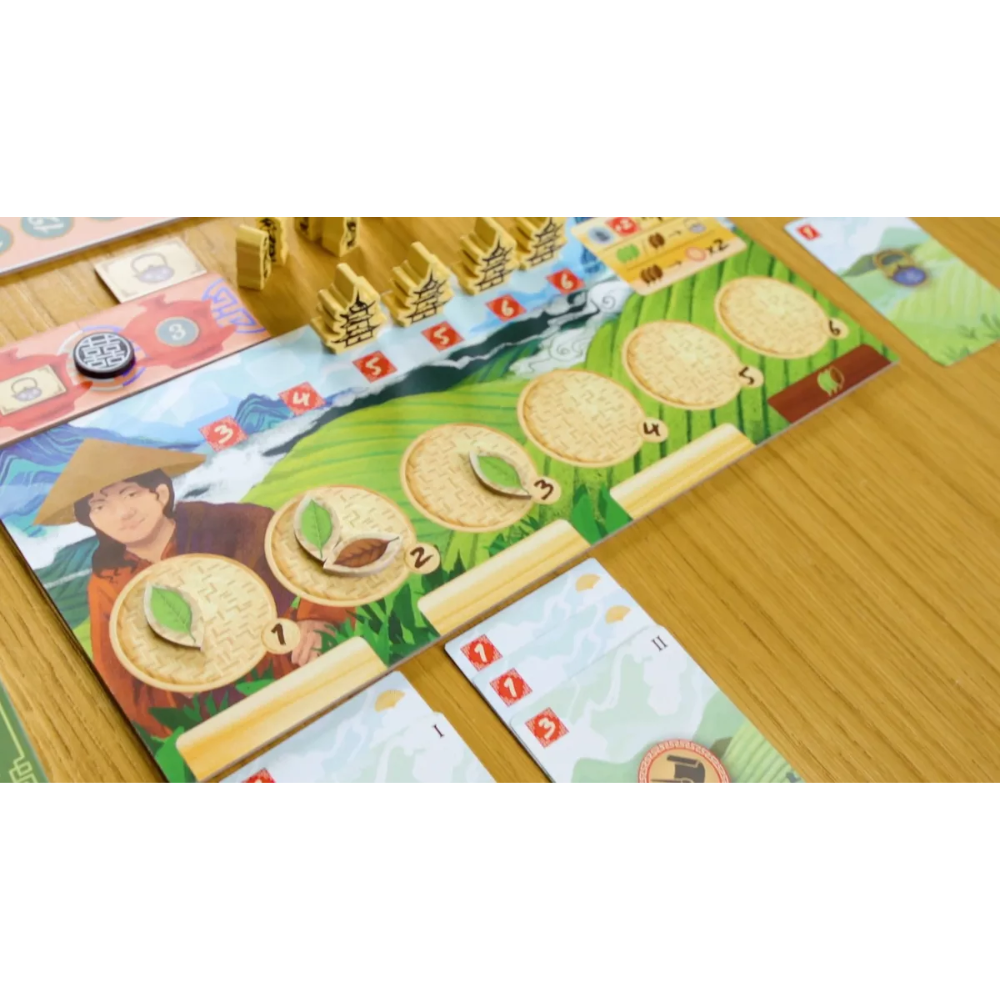 Harness the power of your deck of cards to orchestrate up to four main actions each game round. The strength of these cards is important for performing the chosen action; the higher the strength, the better the effects you will achieve. With your cards, you will build new tea gardens, acquire new cards, trade your tea with eager caravans, ferment your tea leaves, and harvest more tea. Couple your main actions with the power of secondary actions to navigate the river, produce tea cups, or practice tea studies at the university.
