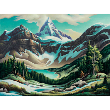 The trail riders of Thomas Hart Benton’s painting are miniscule in relation to the sweeping mountainous landscape they traverse. His dazzling aqua lake matches the hue of the cloud-swept sky, while the snowy peaks and patches evoke the chill in the air. Benton was a regionalist painter, and a proud midwesterner—and a fan of the Rockies, which he visited on horseback in 1964. Take a ride with him via this 1,000-piece jigsaw puzzle.