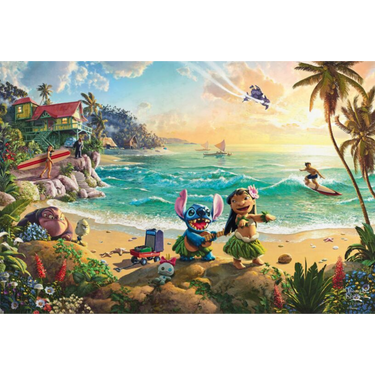 Say aloha to fun with this vibrant 200-piece puzzle from Schmidt’s Disney Dreams Collection, featuring Lilo & Stitch in a tropical Hawaiian paradise. Illustrated by Thomas Kinkade Studios, this beautiful seaside scene captures the playful energy of Lilo, Stitch, and their ohana as they enjoy the surf, sand, and sunshine.