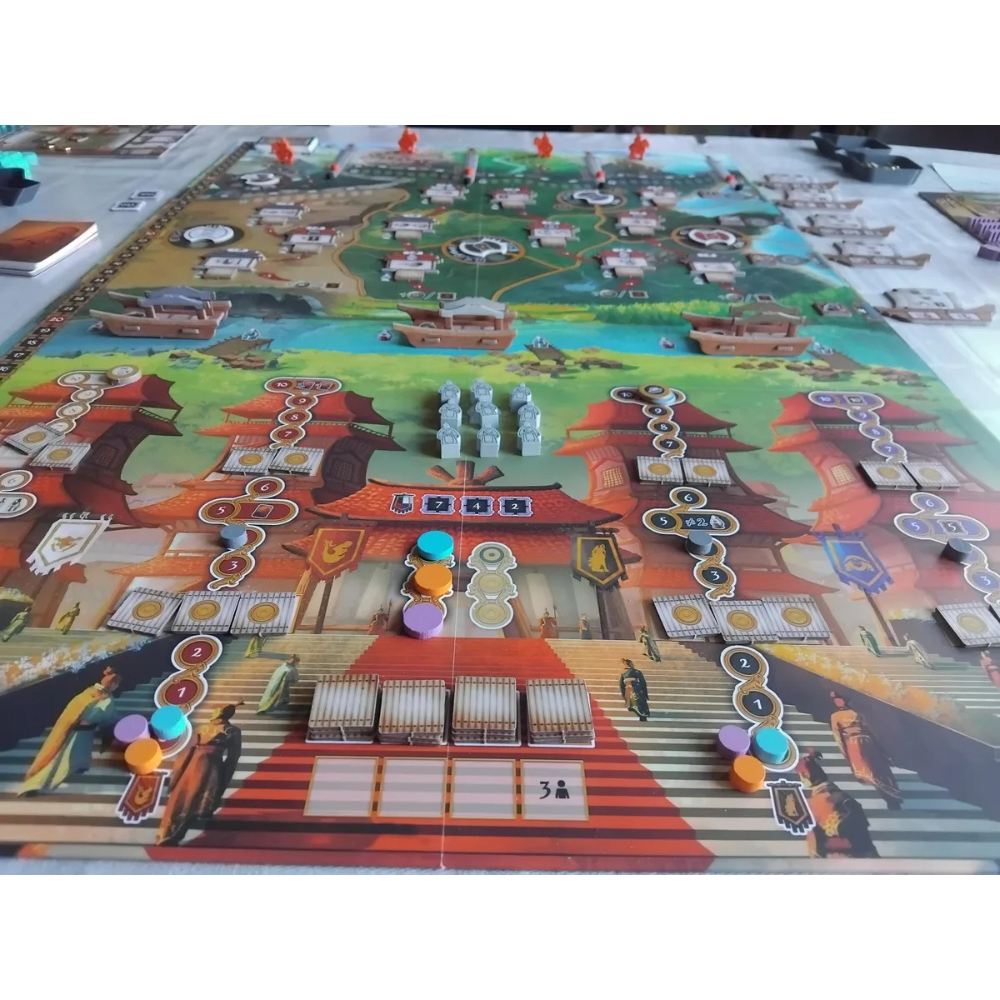 The game lasts four rounds in which you install Governors in the regions and bolster the power of rival ruling houses, thus gaining their favor. You also sell goods to merchant ships that sail the Chinese shores to gain wealth and other benefits. Nevertheless, you must not forget about the nomadic warriors who pose a constant threat on the northern borders of the seven kingdoms. Thus, you must train soldiers and build walls and towers to weaken the invaders and protect your interests, earning prestige in the process.