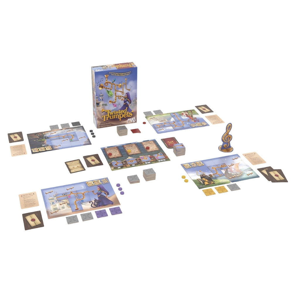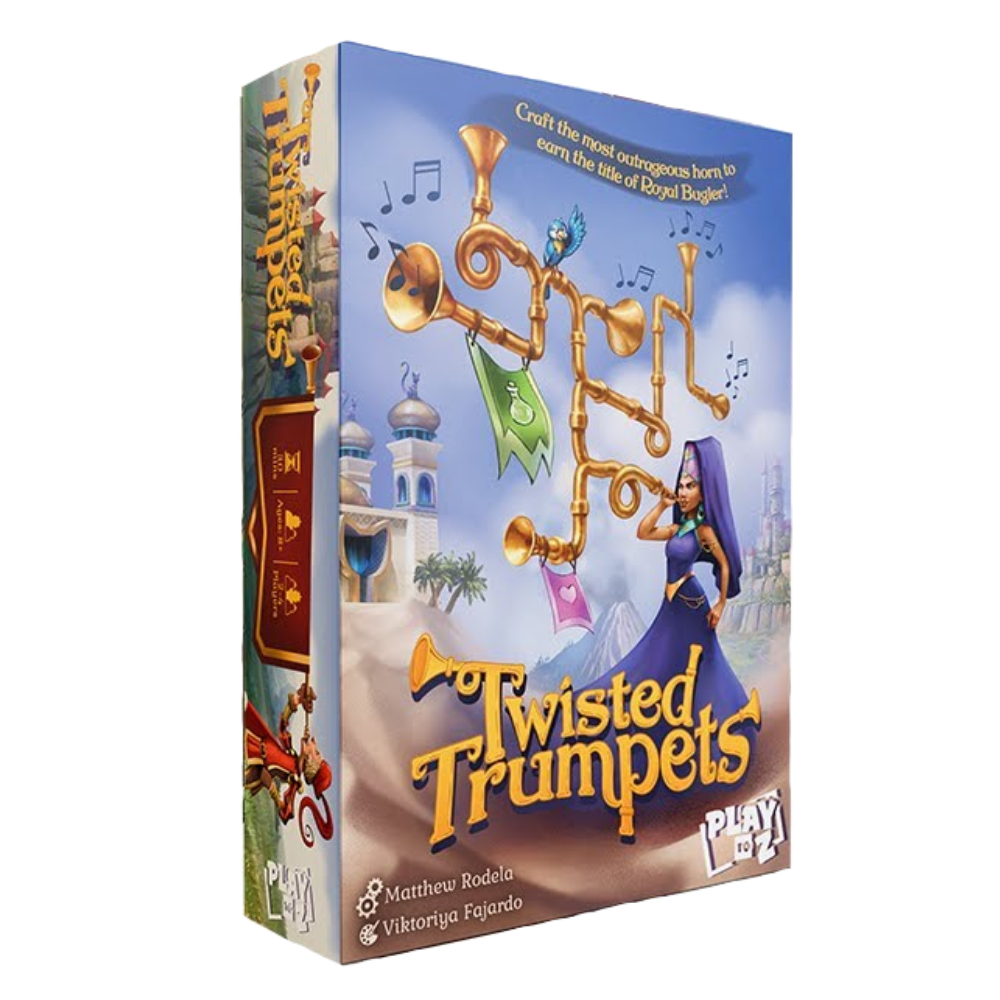 Twisted Trumpets is a lively, competitive tile-laying game where you vie for the prestigious title of “Royal Bugler” by crafting the most whimsical trumpet in the kingdom!