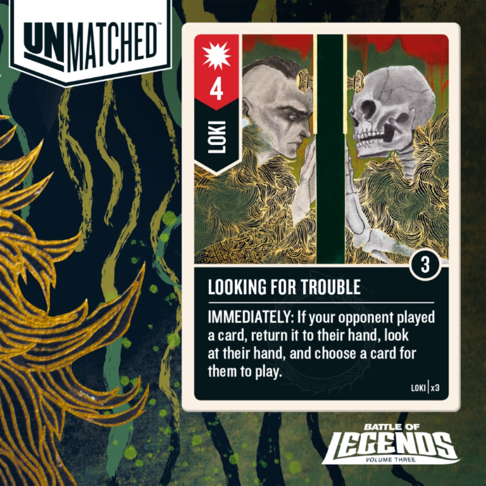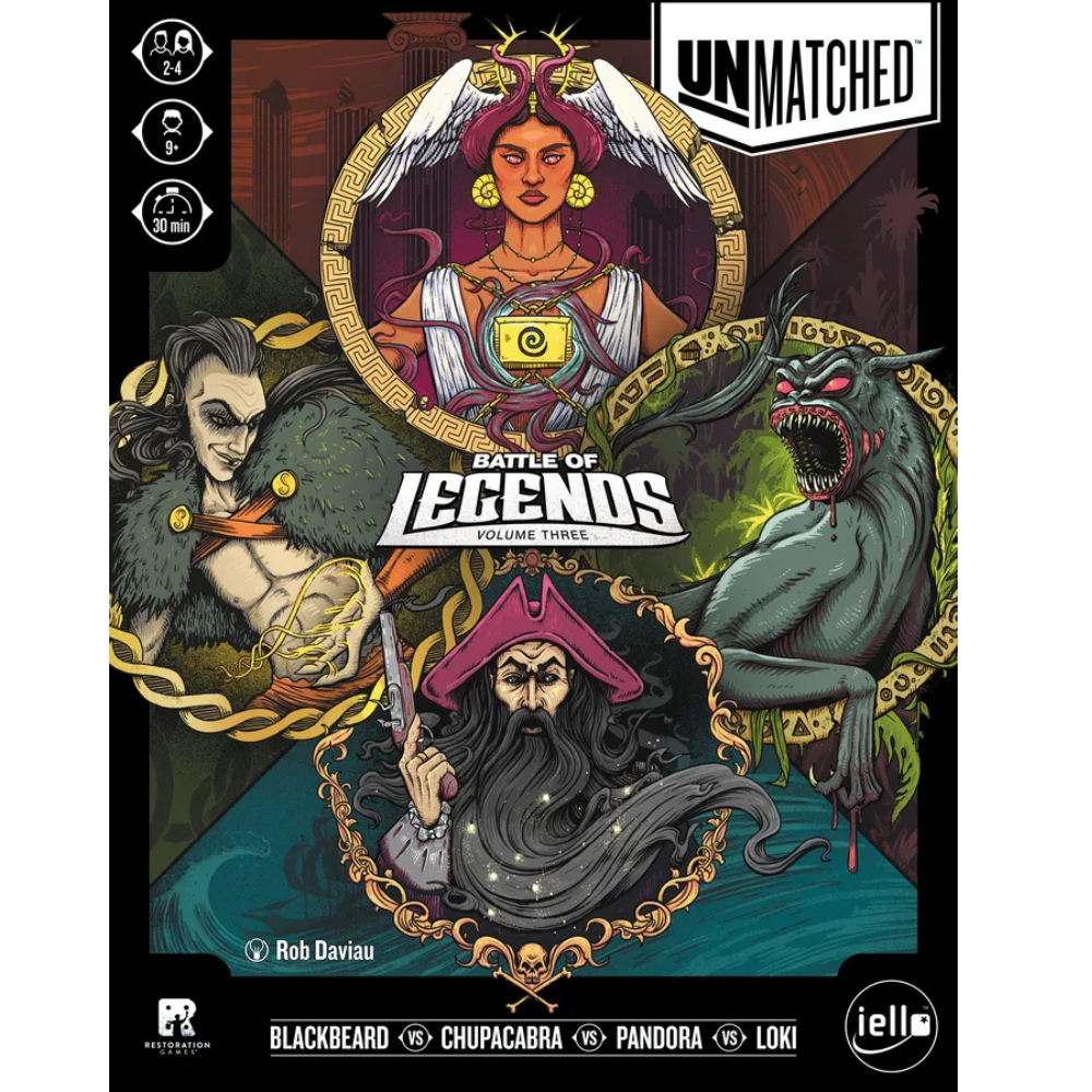 Good things come in threes. Unmatched is the critically acclaimed, best-selling game of tactical combat between unlikely opponents, and the Battle of Legends badge has always been the epitome of “unlikely”. In the final entry of the Battle of Legends set, four disparate heroes come together to see who reigns supreme: