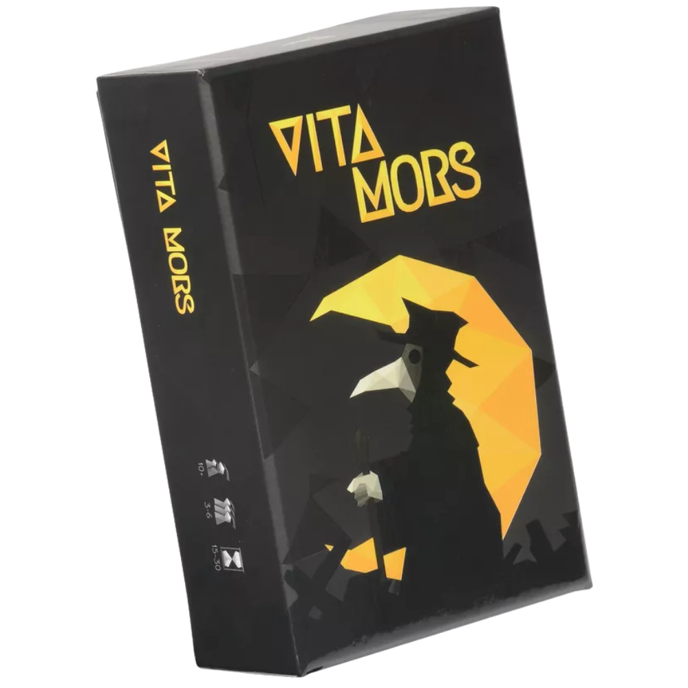 "VITA MORS" is a card game featuring secret identity, partnerships, voting, and hand management. Everyone plays as a Grim Reaper, with the VITA-MORS coin in their hands, messes up with the plague doctor, and controls the destiny of the people in the kingdom Vitamors. Through voting and exercising privilege, players get to determine whether a character should live or die. At the end of the game, the one who makes the pattern of life and death the same as they wish, will eventually become the winner.