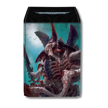This premium Alcove Flip Deck Box features vibrant, full-colour cover artwork from the 10th Edition Tyranids Codex on a leatherette finish. The strong magnetic closure keeps your cards secure inside, and dual thumb notches offer easy access to your deck.