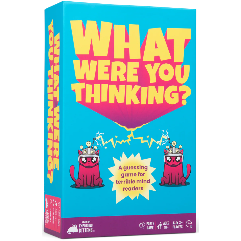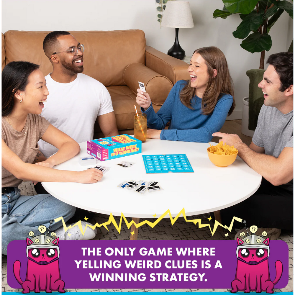 This added challenge makes players think fast and get creative without making the clues too obvious for their opponents to guess first. With quick rounds and endless word combinations, What Were You Thinking? is a brand new twist on word-guessing games.