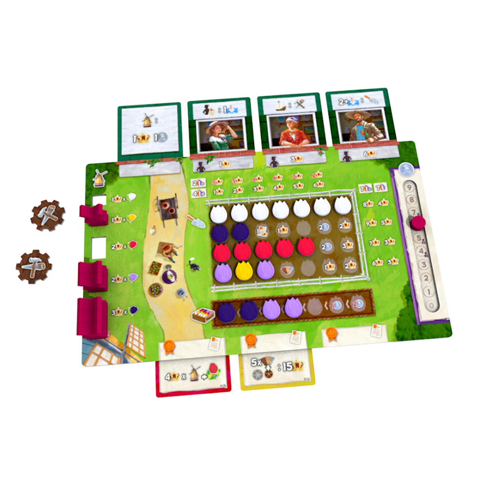Step into Windmill Valley, a vibrant and strategic eurogame inspired by the famous Dutch Bloemen Route — known for its breathtaking tulip fields and iconic windmills. As ambitious tulip farmers, players compete to build the most prosperous and picturesque flower empire in the valley.