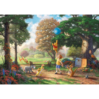 Step into the heartwarming world of the Hundred Acre Wood with this enchanting 6000-piece jigsaw puzzle from Schmidt’s Disney Dreams Collection, featuring artwork by Thomas Kinkade Studios. Join Winnie the Pooh, Christopher Robin, Piglet, Tigger, and friends in a joyful moment beneath sun-dappled trees, brought to life in Kinkade’s signature painterly style.