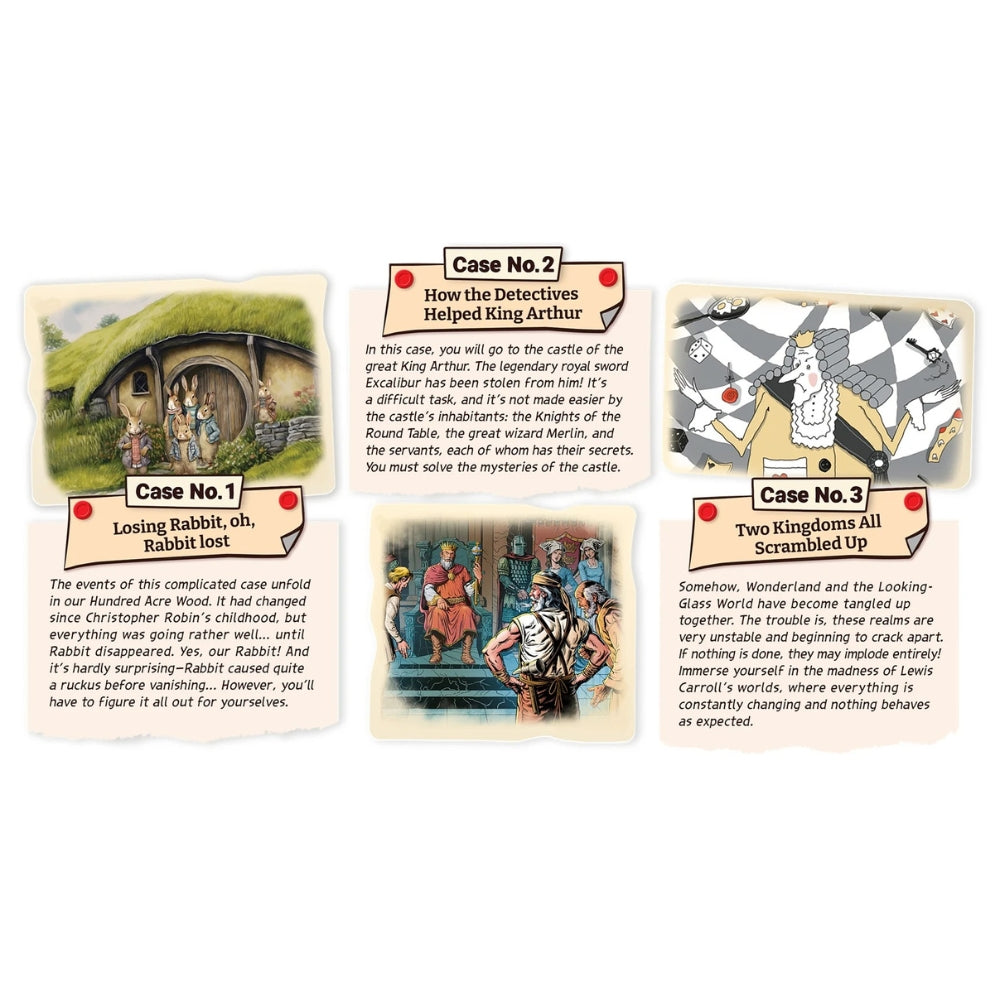 Inspired by the works of A. A. Milne, Lewis Carroll, and Arthurian legends, the game’s three scenarios are rich with literary charm, layered storytelling, clever wordplay, and just the right touch of whimsy. You’ll revisit the Hundred Acre Wood, Wonderland, and the court of Camelot — but not as you remember them. Something strange is afoot, and only a keen mind can uncover the truth.
