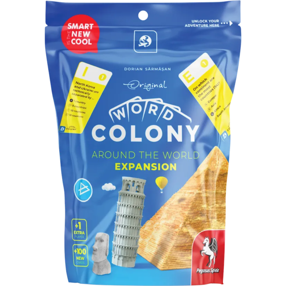 Pack your bags and broaden your horizons with the Word Colony: Around the World Expansion, a new set of cards for Word Colony, jam-packed with questions focusing on distant locales, extraordinary structures, and far-away places.