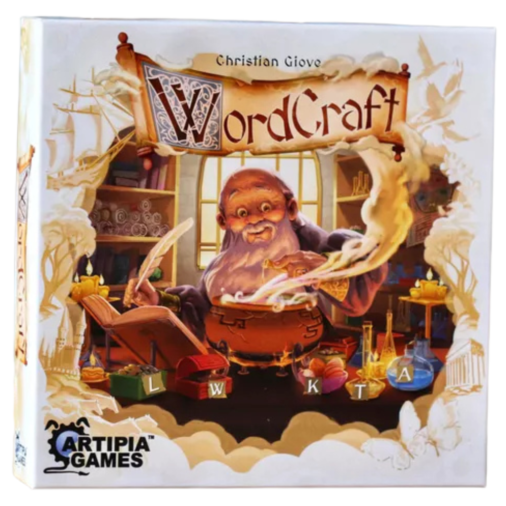 WordCraft is an area control, word game, with strategic paths to victory . Craft words using the 26 letter cards, focus on the achievement cards, score the most experience points, and win.