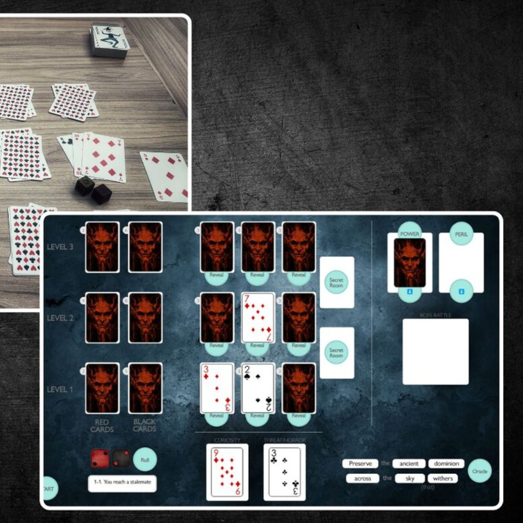 All you need to play Wraithound is two six-sided dice of different colours, a standard deck of cards (jokers included), up to 2 friends (optional) and about 2 hours for a full mission.