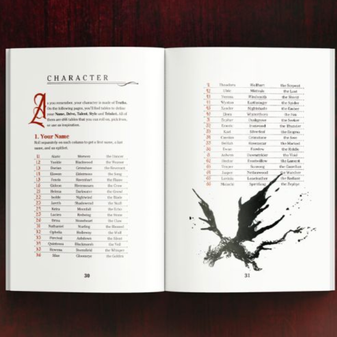 Multiple variations: a full set of tables for locations, rooms, secret rooms, curiosities, threats, horrors, and boss monsters, together with a myriad of character options, ensuring that you'll always have a unique session every time you play.